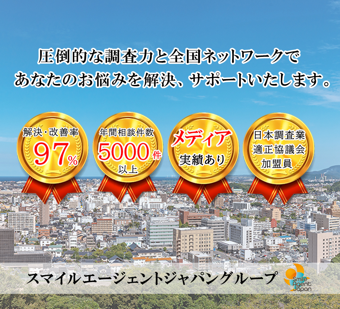 総合探偵社スマイルエージェント八王子は、八王子市全域で不倫調査、浮気調査、素行調査、結婚調査、盗聴器発見調査、盗撮器発見調査、等の各種調査を行っております。
